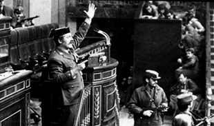 O tenente coronel da Garda Civil Antonio Tejero, con catrocentos gardas civís armados, asaltou o Congreso dos Deputados e mantivo como reféns ao Goberno e aos deputados, mentres anunciaba a chegada dunha autoridade superior e invocaba o nome do rei como máximo responsable. O golpe pretendía volver á ditadura.