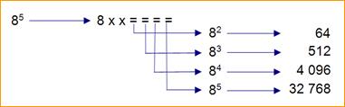 - Potencias coa calculadora. Se temos unha calculadora científica, para facer 85 utilizaremos a tecla que se indica deseguido: