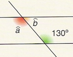 O ángulo b e suplementario do ángulo a=130º. Daquela b= 180º-130º=50º.