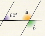 O ángulo b mide 60º, xa que é oposto polo vértice ao ángulo a.
