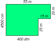 Trapecio rectángulo de bases 60 e 44 m, respectivamente e altura 350 dm.