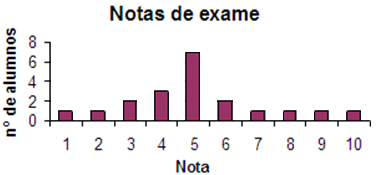 Diagrama de barras. Cando queremos expresar comparacións simples de datos numéricos usamos diagramas de barras.Represéntanse os datos con rectángulos de igual largura e con altura proporcional á variable que se quere comparar. Para representar as notas obtidas polos vinte alumnos no exame de ciencias da natureza, farémolo así: