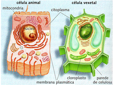 As células vexetais posúen estruturas que non posúen as células animais, unha parede de celulosa e os cloroplastos.