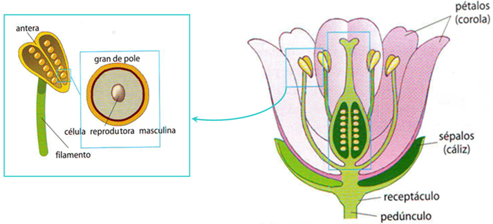 As flores son os órganos reprodutores das, os grans de pole conteñen as células reprodutoras masculinas e o ovario a célula reprodutora feminina, que se unen na fecundación e dan lugar á formación da semente, que dará lugar unha nova planta. Nas anxiospermas, as sementes están protexidas por un froito que facilita a súa dispersión.