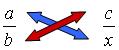 Observe que, considerando os catro elementos da proporción nos extremos dos brazos dunha aspa, podemos dicir que para calcular o termo descoñecido dunha proporción se multiplican os dous números coñecidos que forman un dos brazos da aspa e o resultado divídese polo terceiro número, emparellado coa incógnita no outro brazo.