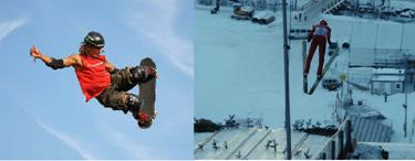 Os corpos que están a unha certa altura do chan teñen enerxía potencial gravitacional. Canto maior sexa a altura á que estean maior será a súa enerxía potencial, que é a enerxía acumulada. Por exemplo, a enerxía potencial (acumulada) que teña un saltador no alto onde se sitúe fará que poida deslizarse cara á parte inferior; así ocorre nos saltos dun esquiador ou do que practica skateboard. Cando o saltador se desliza cara á parte inferior de onde estea situado, a súa enerxía potencial (acumulada) vaise transformando en enerxía cinética, xa que vai adquirindo maior velocidade.