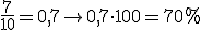 Outro xeito de facelo, máis sinxelo, é efectuar a división que representa a fracción 7/10 e logo multiplicar por cen: