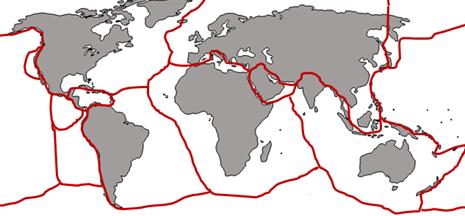 S46. Fotocopie e recorte os mapas dos continentes e das placas litosféricas. Procure información sobre volcáns e terremotos e marque a súa situación no mapa dos continentes, marque tamén algunhas cordilleiras importantes, como o Himalaia e os Andes. Poña un enriba do outro e olle a contraluz. Fíxese en onde se atopan os volcáns, os terremotos, as cordilleiras e a cadea de illas que existe na costa do Pacífico de Asia. Que pode deducir da súa observación?