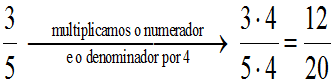 Se multiplicamos e dividimos o numerador e o denominador polo mesmo número obtemos outra fracción que é equivalente á primeira. Fíxese: