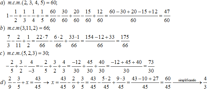 S4. Realice as operacións con fraccións seguintes.