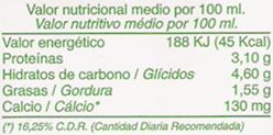 S53. Unha botella de leite ten, na súa etiqueta, a información que recolle a imaxe, referida a 100 mL do leite.