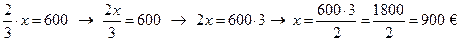 S34. A empresa onde traballo deume un adianto da nómina equivalente aos 2/3 do meu soldo. Se me adiantou 600 euros, cal é o meu soldo mensual?