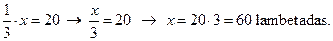 S35. No aniversario da miña sobriña regaláronlle unha bolsa de lambetadas. Na festa comemos os 2/3 delas, e aínda sobraron 20 lambetadas. Cantas tiña a bolsa inicialmente?