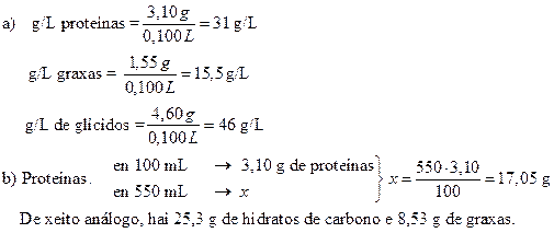 - Exprese a concentración de proteínas, graxas e hidratos de carbono do leite en g/L.