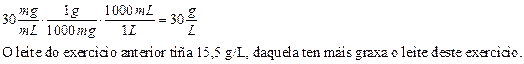 S54. Outra marca de leite informa que a súa concentración en graxas é de 0.030 mg/mL. Cal dos dous leites ten máis graxa na súa composición, este ou o do exercicio anterior?