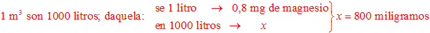 - Cantos gramos de magnesio (Mg) haberá nun m3 desta auga?