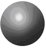 O núcleo segue concentrando a carga positiva do átomo pero xa non se fala de órbitas definidas para o electrón, senón de orbitais. Un orbital defínese como a zona do espazo onde hai maior probabilidade de atopar o electrón. Esta maior probabilidade indícase no debuxo con puntos e alí onde hai maior probabilidade haberá máis puntos. No debuxo vemos claramente que atoparemos con maior probabilidade o electrón preto do núcleo.
