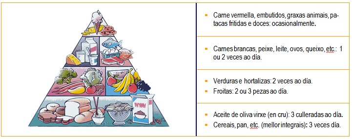 É outra ferramenta creada polos nutricionistas, que resume as recomendacións xa dadas na roda de alimentos para crear unha dieta equilibrada: