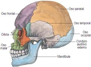 Cranio. Protexe o encéfalo. Está formado por ósos planos unidos por articulacións inmóbiles.
