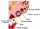 No entanto, o folículo segrega unha hormona que provoca o engrosamento da mucosa uterina ou endometrio. Ao liberar o óvulo, o folículo transfórmase no corpo lúteo, o cal produce hormonas que continúan co crecemento do endometrio.