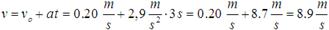 Unha vagoneta de montaña rusa móvese cunha v0=0,20 m/s. Cae costa abaixo cunha aceleración de 2,9 m/s2. Que velocidade ten logo de caer durante 3 s?