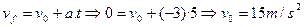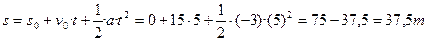 O condutor dun vehículo tarda en parar 5 s despois de frear cunha deceleración de 3 m/s2. Calcule a velocidade inicial do automóbil antes de comezar a frear e o espazo percorrido durante a freada.