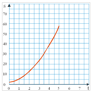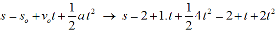 Un móbil parte da posición so = 2 m con velocidade inicial vo = 1 m/s e aceleración a = 4 m/s2. Debuxe a súa gráfica s/t (posición/tempo).