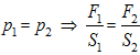 E como S2 é maior que S1, daquela a forza F2 é maior que F1.