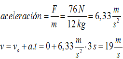 S29. Unha forza de 76 N actúa sobre un coro de 12 kg de masa inicialmente en repouso. Calcule: