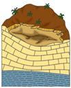 Nummulites: eran grandes foraminíferos (un tipo de protozoos) cunha cuncha formada por un disco plano de dous a catro centímetros de diámetro. Viviron nos mares quentes do hemisferio norte durante o Mioceno (período da era terciaria).