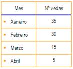 Exemplo. Cos datos da táboa, que representan as vendas dunha tenda de electrodomésticos nos meses indicados, realícese o gráfico correspondente.