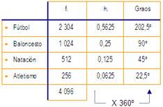 Para representarmos os datos nun diagrama de sectores temos que calcular o valor de cada sector en función da frecuencia de cada modalidade. Así, a área de cada sector ten que ser proporcional á frecuencia absoluta da modalidade correspondente.