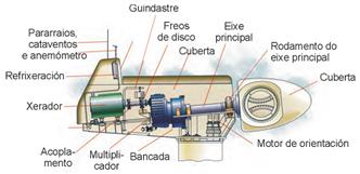 A torre ten unha altura de arredor de 60 m, dependendo da potencia da turbina. Os aeroxeradores máis eficientes teñen tres pas; un número maior delas diminúe o rendemento debido a que cada pa entra na zona de turbulencia creada pola pa precedente. O multiplicador aumenta unhas 60 veces a velocidade de rotación do eixe, conseguindo unhas 1500 rpm para o xerador eléctrico.