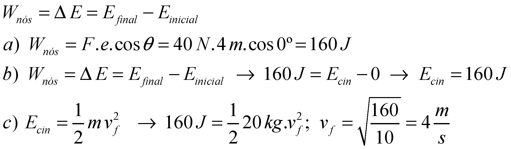 S37. Sobre o carriño da compra, con 20 kg, facemos unha forza de 40 N ao longo de 4 metros. O carriño estaba en repouso inicialmente.