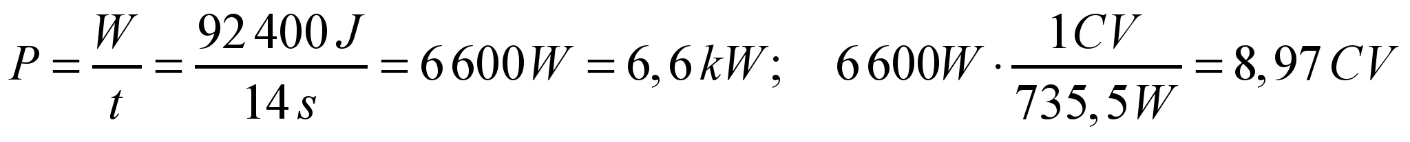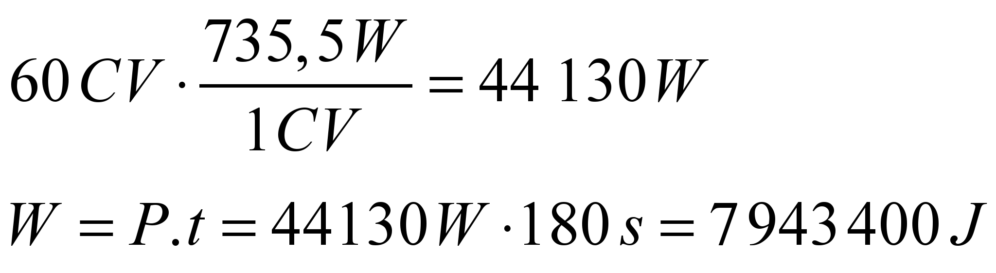 S34. Calcule o traballo feito por unha máquina dunha potencia de 60 CV cando funciona durante tres minutos.