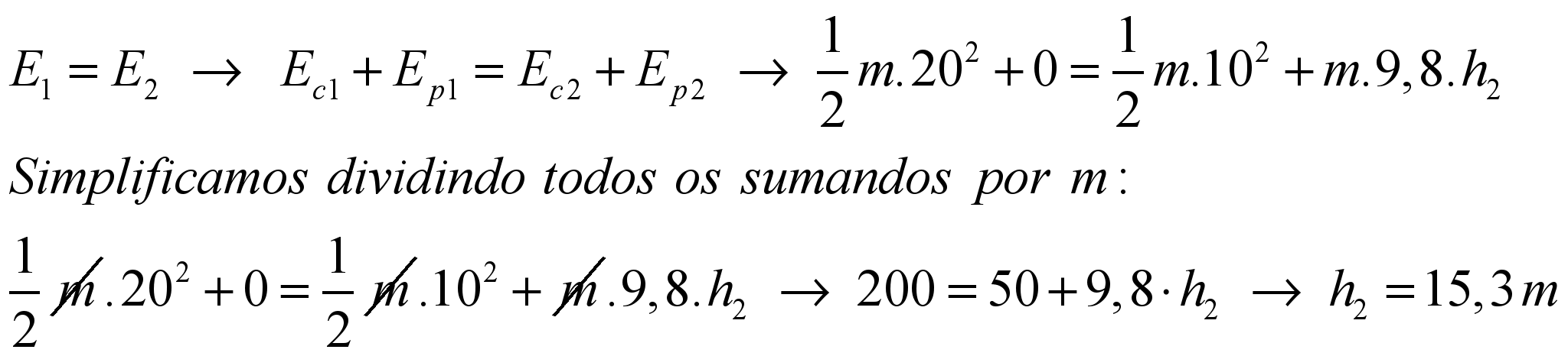 S46. Lanzamos unhas chaves cara a arriba cunha velocidade inicial de 20 m/s. A que altura terán unha velocidade de 10 m/s? Supoña desprezable o rozamento contra o aire.