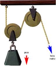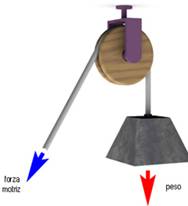A condición de equilibrio dunha polea fixa é F = R, é dicir, as poleas simples fixas non producen ningunha vantaxe mecánica pero axudan co manexo das resistencias. A forza necesaria será de 200 N. |