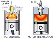 Variante do motor de explosión axeitada, por tamaño e robustez, para vehículos pesados (locomotoras diésel). O funcionamento é similar ao motor de explosión, pero o acendido dos gases non se xera pola chispa da buxía, senón por compresión. |
