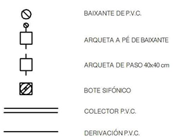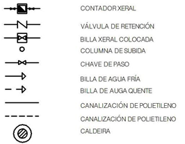 Como en todas as instalacións, para simplificar a súa interpretacion e debuxo nos proxectos de construción, os elementos dos circuítos de fontanaría e de saneamento represéntanse mediante símbolos.