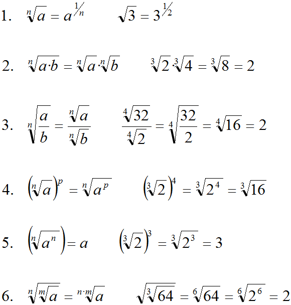 Operacións con radicais. Propiedades dos radicais
