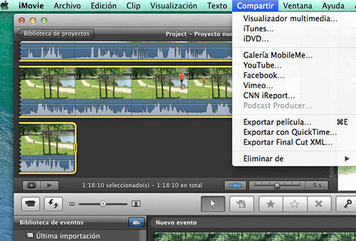 O seguinte paso sería fragmentar este vídeo en imaxes, o ideal son de 23 a 9 imaxes por segundo. Para conseguir estes frames do vídeo temos varios métodos. O máis sinxelo consiste en capturar ou imprimir a pantalla do ordenador co vídeo orixinal a intervalos regulares, ou exportar o vídeo en secuencia de imaxes cun editor como o iMovie.