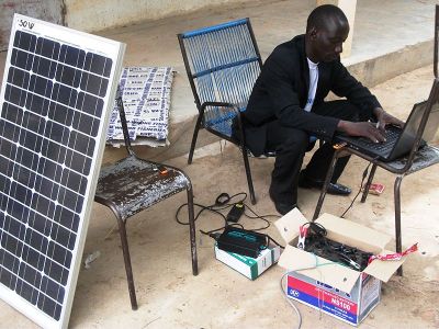 A conexión móbil require en ocasións o uso dun módem USB. Na foto, un paisano de Malí conecta o seu equipo portátil mediante esta modalidade. Foto en Flickr, Toujours Passages (CC BY 2.0).