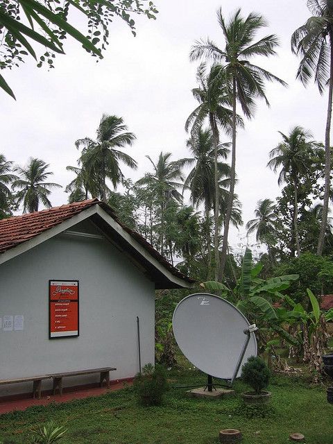 Este telecentro, situado no interior de Sri Lanka, dispón dun acceso de banda larga vía satélite. A comunicación realízase mediante un módem bidireccional, capaz de recibir e enviar datos vía satélite. Na modalidade unidireccional só poderíamos recibir datos vía satélite e necesitaríamos unha conexión terrestre (telefónica ou por cabo) para enviar datos ao ISP. [Foto en Flickr, jaliyaj (CC BY 2.0)]