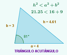 | Se h2 < a2 + b2 o triángulo é acutángulo | ||