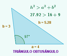 | Se h2 > a2 + b2 o triángulo é obtusángulo | ||