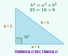 | Se h2 = a2 + b2 o triángulo é rectángulo | ||