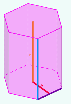 A área dun prisma será a suma das áreas das súas bases máis a suma das áreas das súas caras laterais. É dicir, | |