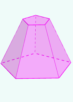 Un tronco de pirámide é o corpo comprendido entre a base da pirámide e un plano que corta a todas as arestas laterais. Os troncos de pirámide noméanse do mesmo xeito que as pirámides das que proceden. Así, falamos de troncos triángulares, cuadrangulares, pentagonais,… Se o plano secante é paralelo á base falamos de tronco de bases paralelas. | ||