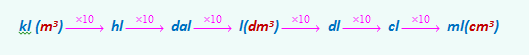 Igual que no caso da medida da lonxitude ou da superficie, para medir o volume, ás veces é necesario utilizar múltiplos e divisores da unidade fundamental. Tendo en conta que agora estamos medindo tres dimensións espaciais, cada unidade de volume será 1000 veces a unidade de orde inferior. |
