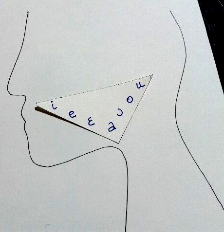 Se observas como pronuncias /i/ e /u/ decataraste do motivo polo que dicimos que son "pechadas"; o punto de articulación do /i/ é anterior e o do /u/ posterior. Practica ti e observa o triángulo das vogais que forma a súa articulación.